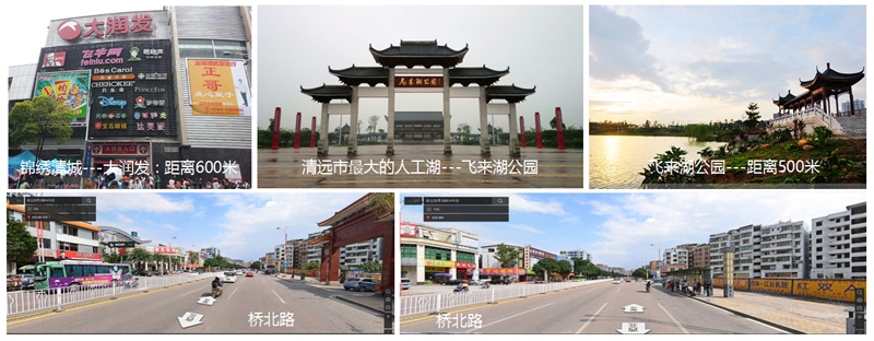 距離城市廣場1.5公里,距離清遠最大的濕地公園飛來湖公園500米,大學橋、筆架河體育公園就在旁邊