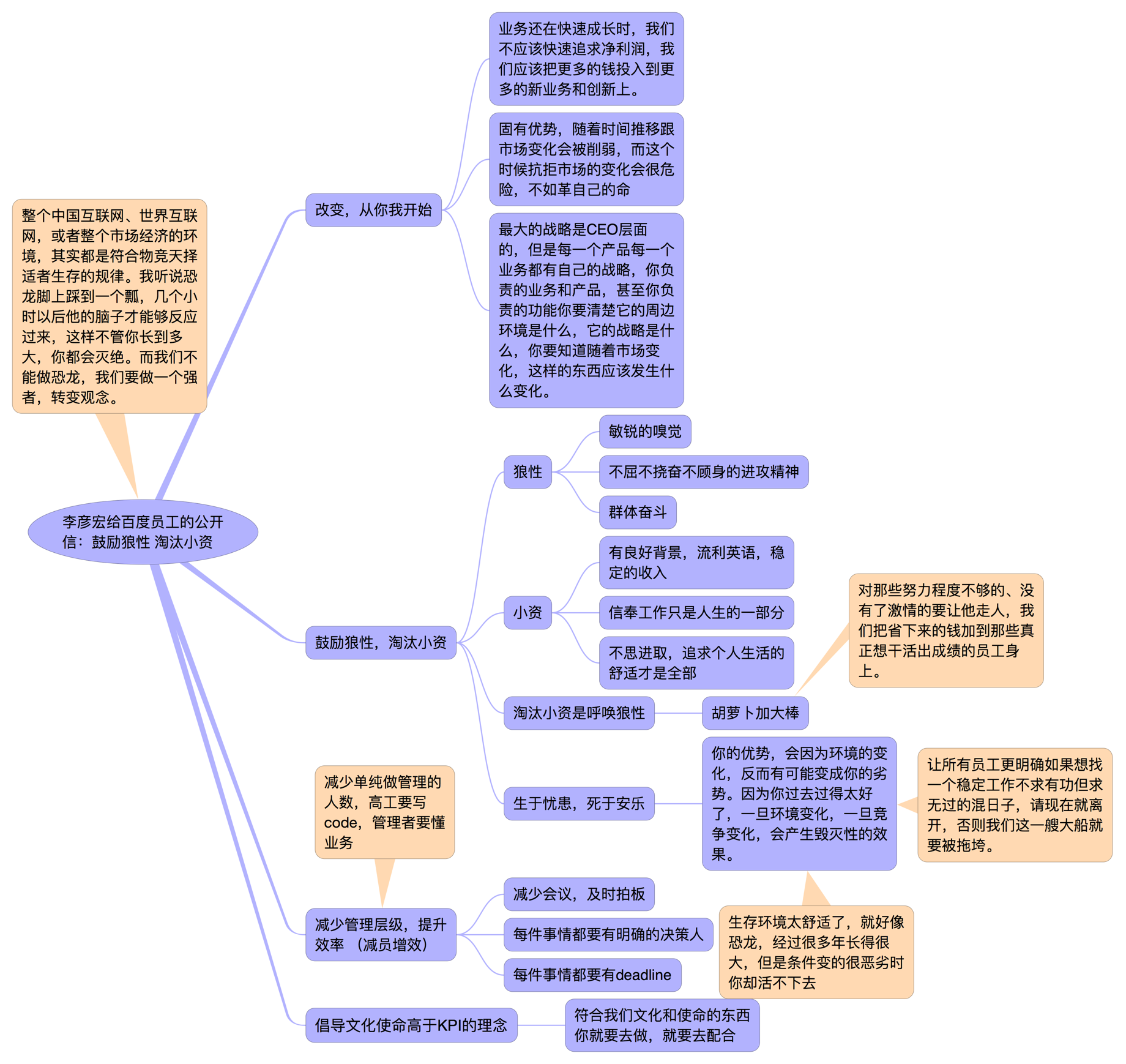 李彥宏的公開信題為“改變,從你我開始”,他認(rèn)為狼性的定義是敏銳的嗅覺、不屈不撓奮不顧身的進(jìn)攻精神、群體奮斗,與現(xiàn)在的百度非常合適。