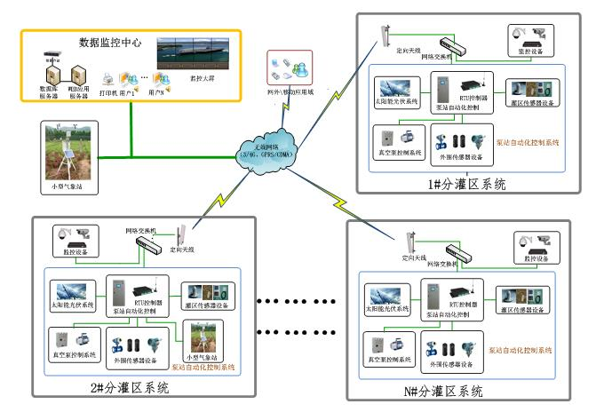 智能化節(jié)水灌溉系統(tǒng)由無線閥門控制器、電磁閥、無線中繼器、無線水泵控制器、無線水分采集器、無線氣象站等設(shè)備和監(jiān)控中心組成,實(shí)現(xiàn)實(shí)時(shí)水壓調(diào)節(jié),遠(yuǎn)程監(jiān)控并控制閥門電機(jī)啟停,滿足用戶對灌溉過程監(jiān)控灌溉質(zhì)量分析和灌溉工藝改進(jìn)的需求。