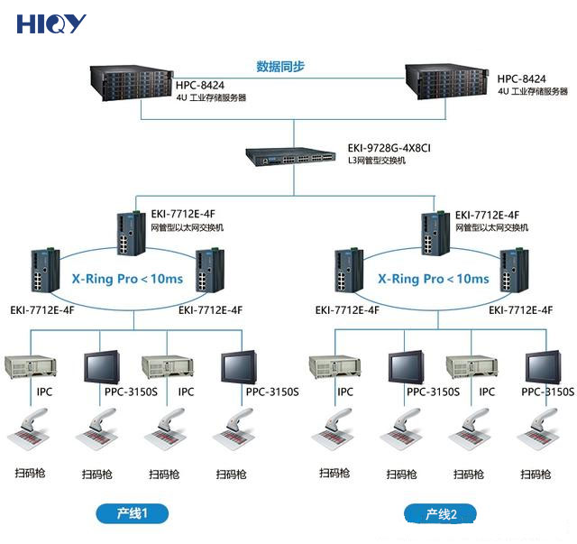 其次針對網(wǎng)絡改造設計部分:因客戶要求雙核心網(wǎng)絡架構,著重在整個網(wǎng)絡冗余備份,所以我們推薦使用互動EKI-7712系列工業(yè)級管理型交換機,通過互動特有的X-ring環(huán)網(wǎng)冗余協(xié)議,避免數(shù)據(jù)傳輸中斷,小于20ms的自愈時間,完全能滿足客戶需求。另外,客戶在網(wǎng)絡改造的同時也要求后續(xù)的網(wǎng)絡系統(tǒng)維護管理,互動專利IXM技術-自動布建,交叉網(wǎng)管專利協(xié)議,能實現(xiàn)客戶在管理運營上的需求。在核心層部分,我們同樣推薦客戶使用EKI-9728G三層網(wǎng)管交換機,作為不同系統(tǒng)之間匯聚角色,并且負責與服務器數(shù)據(jù)處理系統(tǒng)串連。各車間的數(shù)據(jù),透過兩路光纖與核心層交換機連接,避免當端口出現(xiàn)故障,而造成數(shù)據(jù)丟失,另外,一旦發(fā)生核心層交換機故障時,互動EKI-9728G配有端口Auto pass的功能,能在設備故障時,仍進行數(shù)據(jù)通訊,為整個網(wǎng)絡架構提供最穩(wěn)定的保障!
