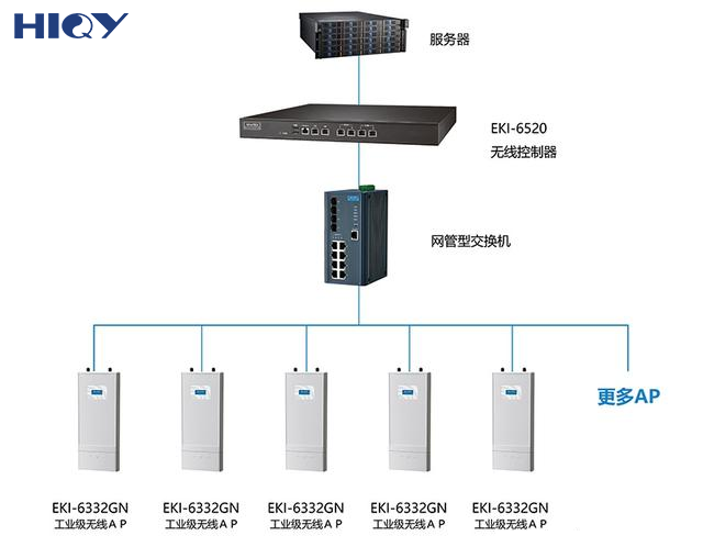 首先針對無線覆蓋設計部分:由于客戶此次需要進行無線環(huán)境改造的區(qū)域為大型廠房車間,并為金屬結構建筑,與客戶溝通后,我們推薦使用互動EKI-6332工業(yè)級無線AP,作為無線環(huán)境覆蓋選擇。互動EKI-6332無線AP,擁有工業(yè)級設計,針對工業(yè)現(xiàn)場能提供較高的防護等級與抗干擾表現(xiàn)。此外,由于客戶要求對所有無線登入客戶進行管控,終端設備必須確保上傳與下載帶寬,漫游與數(shù)據(jù)回傳時效性等,整體網(wǎng)絡方案中,搭配互動EKI-6520無線控制器,可管理EKI-6332無線AP,提供登入者管控,并且能使AP間的聯(lián)機附載均衡,優(yōu)化整個漫游表現(xiàn),確保客戶端的上傳與下載帶寬,滿足客戶在無線環(huán)境改造的需求。