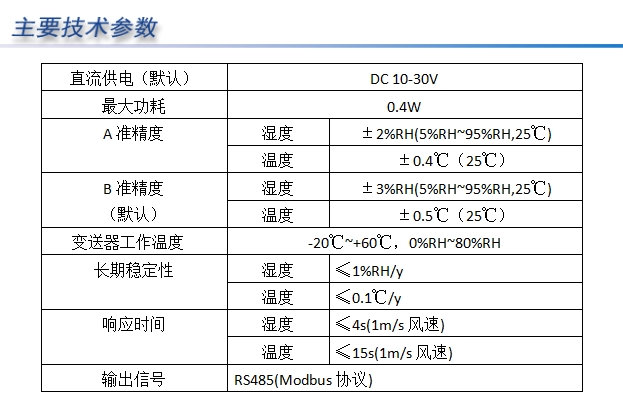 本溫濕度變送器采用工業(yè)級(jí)芯片、高精度溫濕度傳感器,確保溫濕度變送器的優(yōu)異可靠性、高精度、互換性。采用RS485硬件接口(具有防雷設(shè)計(jì)),協(xié)議層兼容標(biāo)準(zhǔn)的工業(yè)Modbus-Rtu協(xié)議。可兼容各種主機(jī)平臺(tái)(PC軟件、觸摸屏、PLC、組態(tài)王),本公司免費(fèi)提供測(cè)試平臺(tái)軟件和配置軟件。