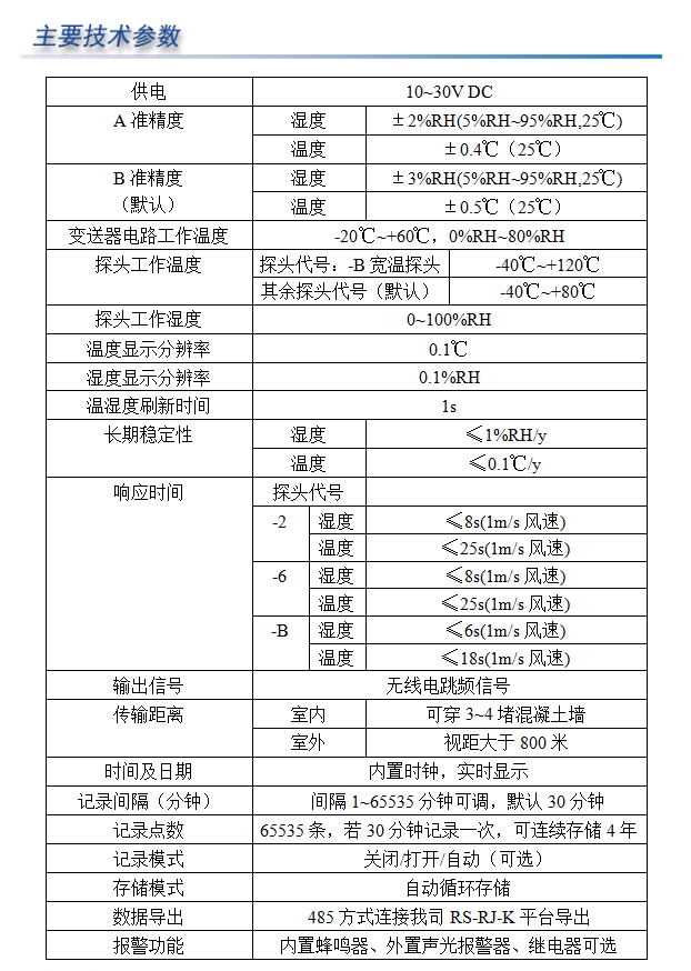本產品采用外置防水溫濕度傳感器,溫濕度傳感器的PE濾芯防塵效果明顯。本公司獨有的防水處理工藝徹底的解決了溫濕度傳感器凝露狀態壽命短的問題。本溫濕度傳感器即使帶電狀態放入水中長時間浸泡也不會損壞。由于透氣孔徑微小造成檢測靈敏度降低,此種溫濕度傳感器不適合高靈敏度場合。