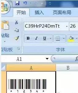 Excel也可以制作條形碼,需要下載條形碼字體,例如C39HrP24DMTt就是一種條形碼字體,對數字或字母選擇該字體,就形成了對應的條形碼。