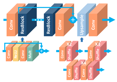 增強和恢復網絡是它們自己的獨特之處。因為我們真正關心的是高像素/空間精度,所以我們不會對這些進行任何降采樣。降采樣真的會殺死這些信息,因為它會減少我們空間精度的許多像素。相反,所有的處理都是在完整的圖像分辨率下完成的。