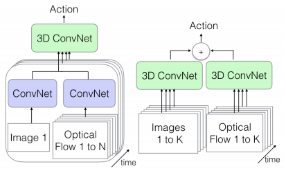(3)將我們的幀序列傳遞給一個3D CNN,將視頻的光流表示傳遞給另一個3D CNN。這兩個數據流都有可用的空間和時間信息。這可能是最慢的選項,但同時也可能是最準確的選項,因為我們正在對視頻的兩個不同表示進行特定的處理,這兩個表示都包含所有信息。