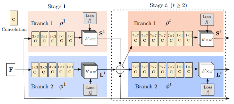 姿態估計模型需要完成兩個任務:(1)檢測每個身體部位圖像中的關鍵點(2)找出如何正確連接這些關鍵點的方式。這分為三個階段: