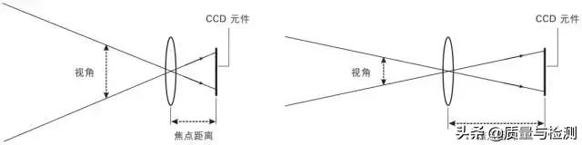 工作距離范圍中的拍攝范圍。一般來說,拍攝對象和鏡頭的工作距離越長,則視野越廣(視野角)。另外,視野的廣度由鏡頭的焦點距離來決定。我們將相對于視野,使用鏡頭可以拍攝的范圍的角度稱為視角或者視野角。鏡頭的焦點距離越短,則視角越大,視野也就越廣。相反,焦點距離越長,則可以放大遠處的拍攝對象。