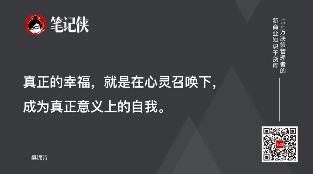“有人問我,人生的幸福在哪里?我覺得就在人的本性要求他所做的事情里。真正的幸福,就是在心靈召喚下,成為真正意義上的自我。”