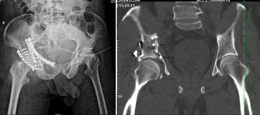 手術期間,該院骨科團隊按照術前規劃,精準入路完成了良好的復位和固定,整個手術用時短,創傷小,出血量顯著減少,患者疼痛輕。術后復查顯示,關節面平整,頭臼關系匹配良好,且患者恢復迅速。
